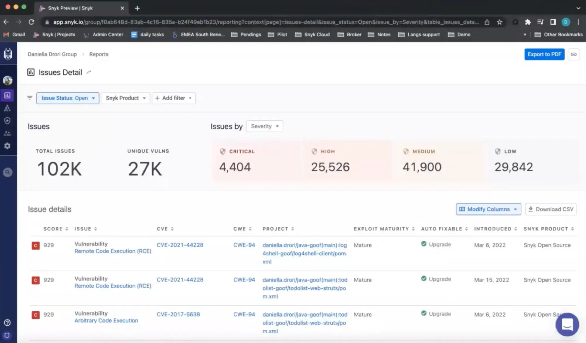 Snyk focuses on enabling developers to fix vulnerabilities early with minimal friction. Its coverage spans open-source dependencies, containers, IaC templates and cloud configurations. Snyk’s ecosystem of integrations is one of the strongest on the market, with seamless connections to GitHub, GitLab, Jenkins, VS Code and cloud providers. The platform excels at identifying actionable fixes, offering upgrade suggestions and pull requests that remediate issues automatically. For cloud-native and agile teams, Snyk provides rapid scanning and highly contextual vulnerability data that maps directly to developer workflows.